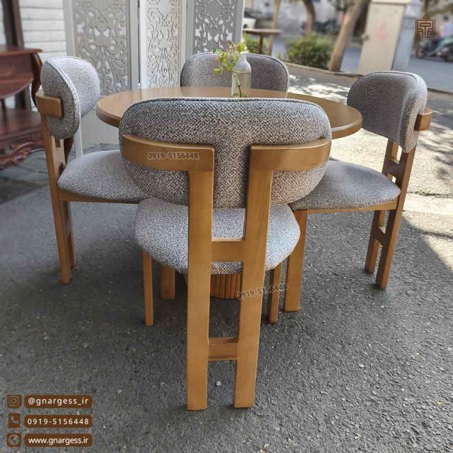 میز ناهارخوری 4 نفره راش صندلی اچ مبلی با میز پمینار گرد