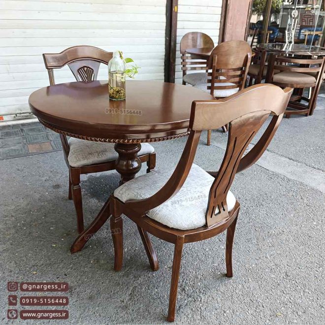 حراج پاییزی میز ناهارخوری 4 نفره راش صندلی اچ مبلی با میز پمینار گرد