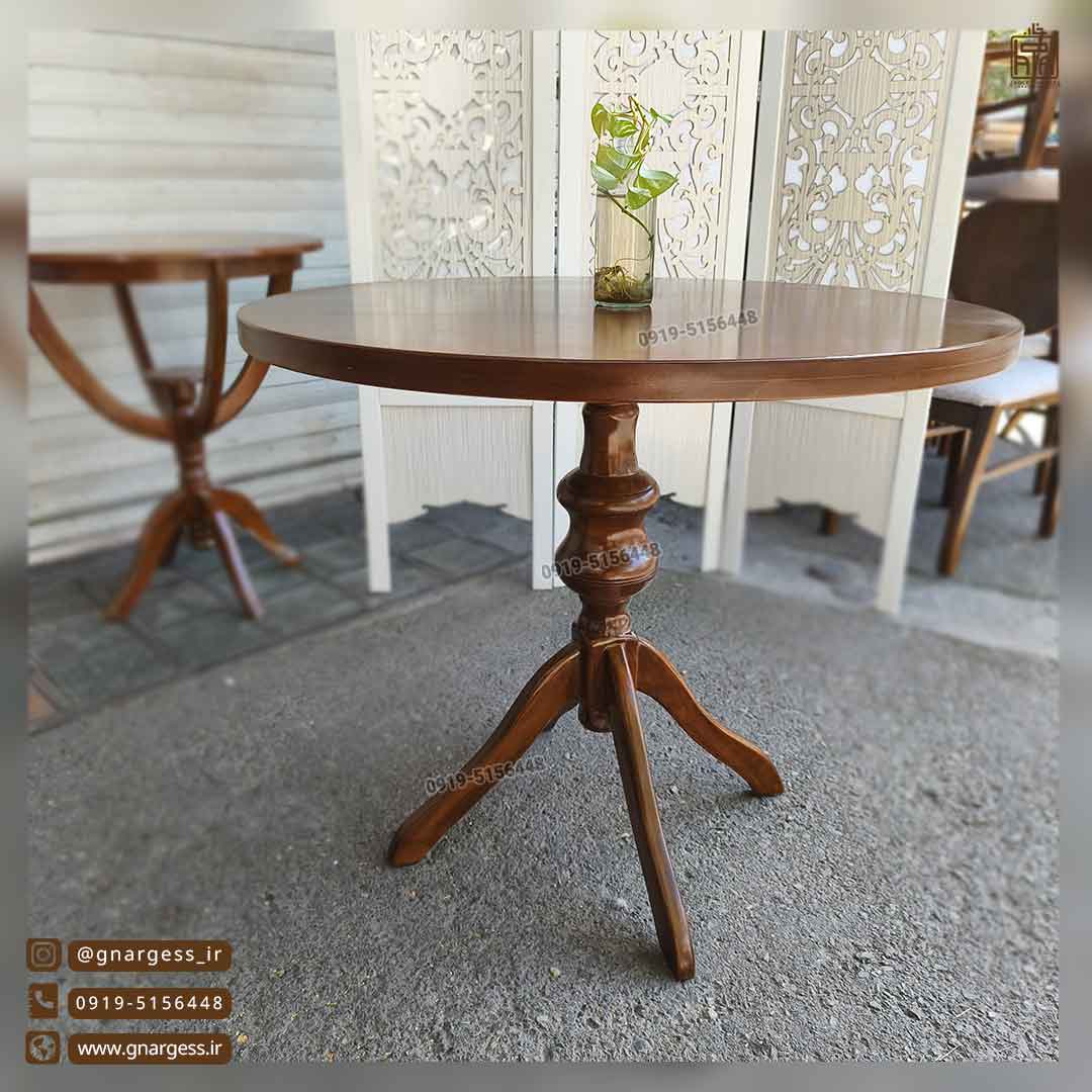 میز ناهارخوری چوبی فیلی با میز گلدانی 2 نفره
