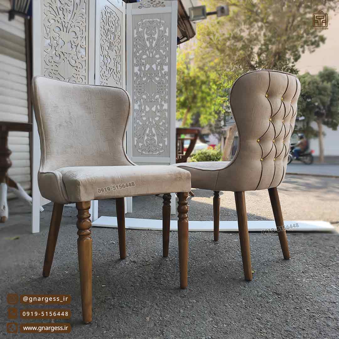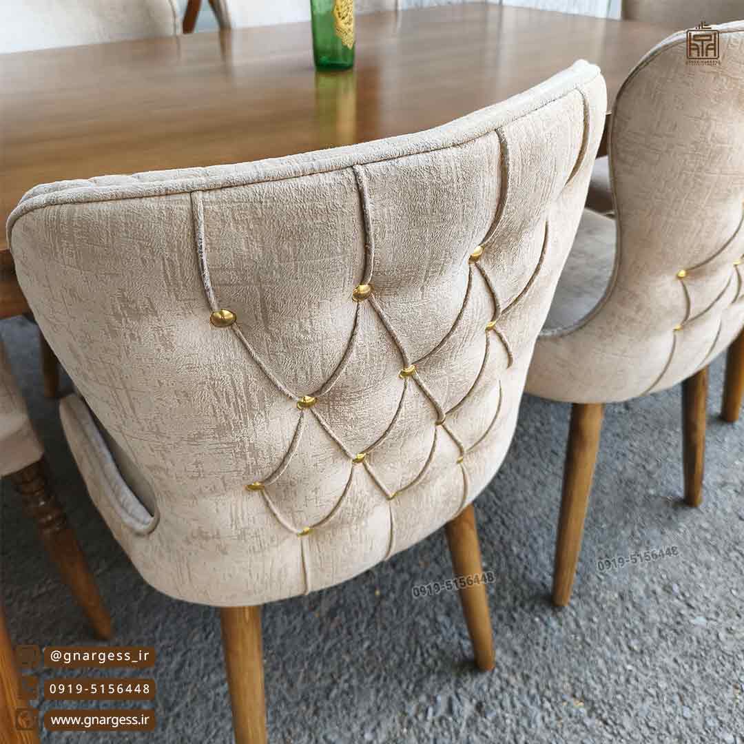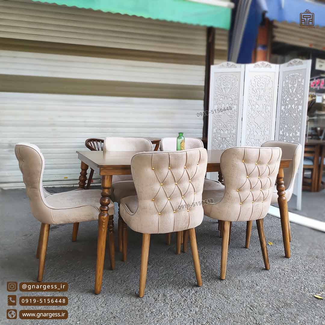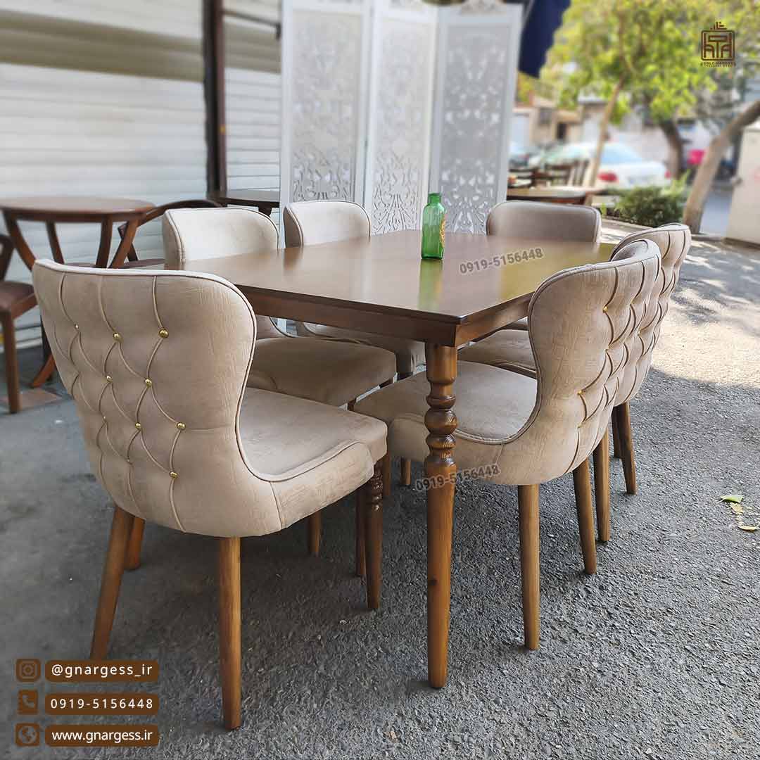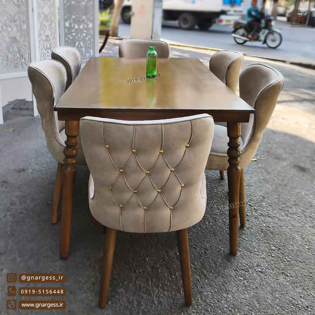 میز ناهار خوری چوبی با صندلی مبلی بوگاتی