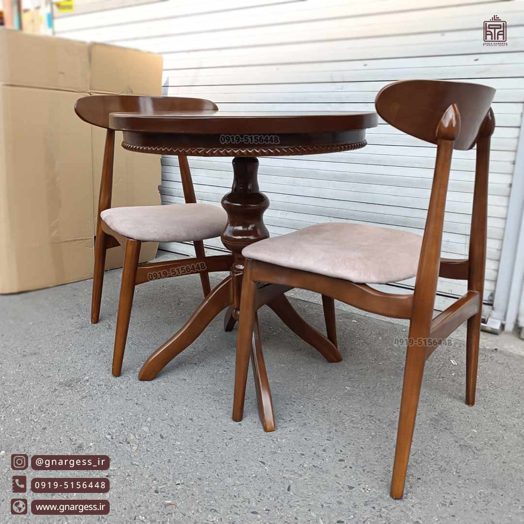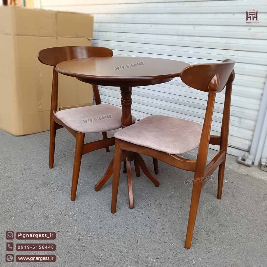 میز و صندلی 2 نفره چوبی گلرویا با صندلی میز ناهارخوری چوب راش وان(جهت خرید تماس بگیرید)