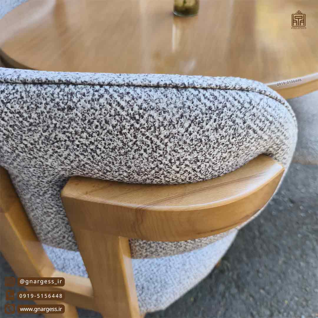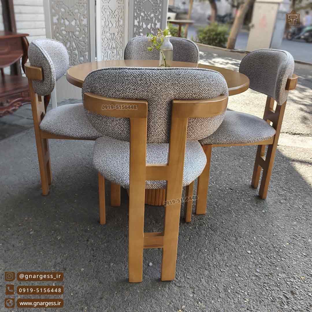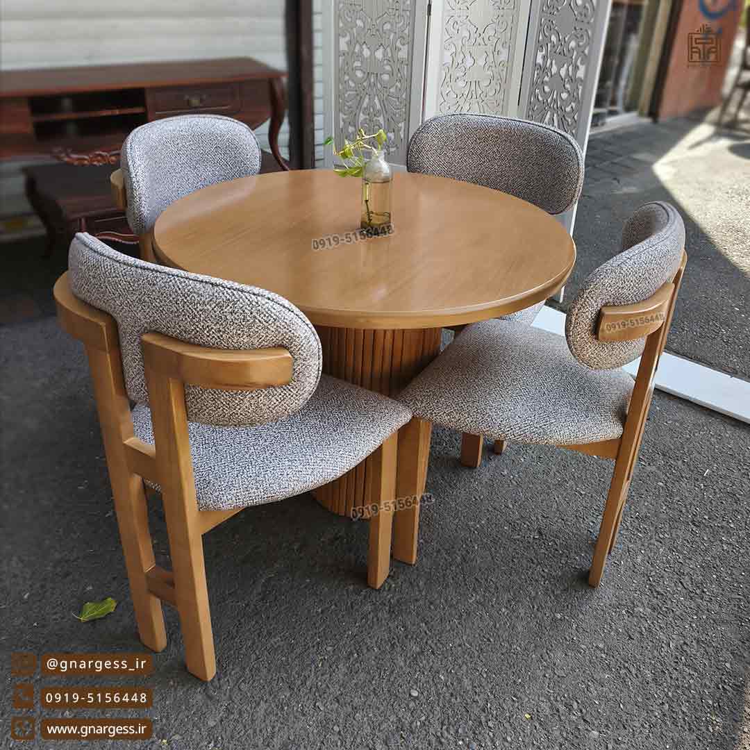 همراه ما باشید با عرضه و تولید ناهارخوری چوبی پمینار گرد همراه با صندلی چوب راش اچ مبلی